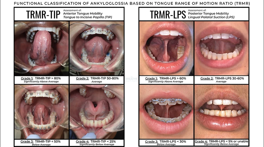 The photos below show examples of both normal and restricted tongue movements. Typically patients that present with Grades 3-4 have restricted tongue mobility and benefit from a tongue tie release. Some patients with Grade 2 mobility may also benefit depending on their symptoms. Infants that have ties and are struggling to nurse or bottle feed are also candidates for the procedure. At Sunrise Pediatric Dentistry, we assess every patient for tethered oral tissues as part of our comprehensive exams.